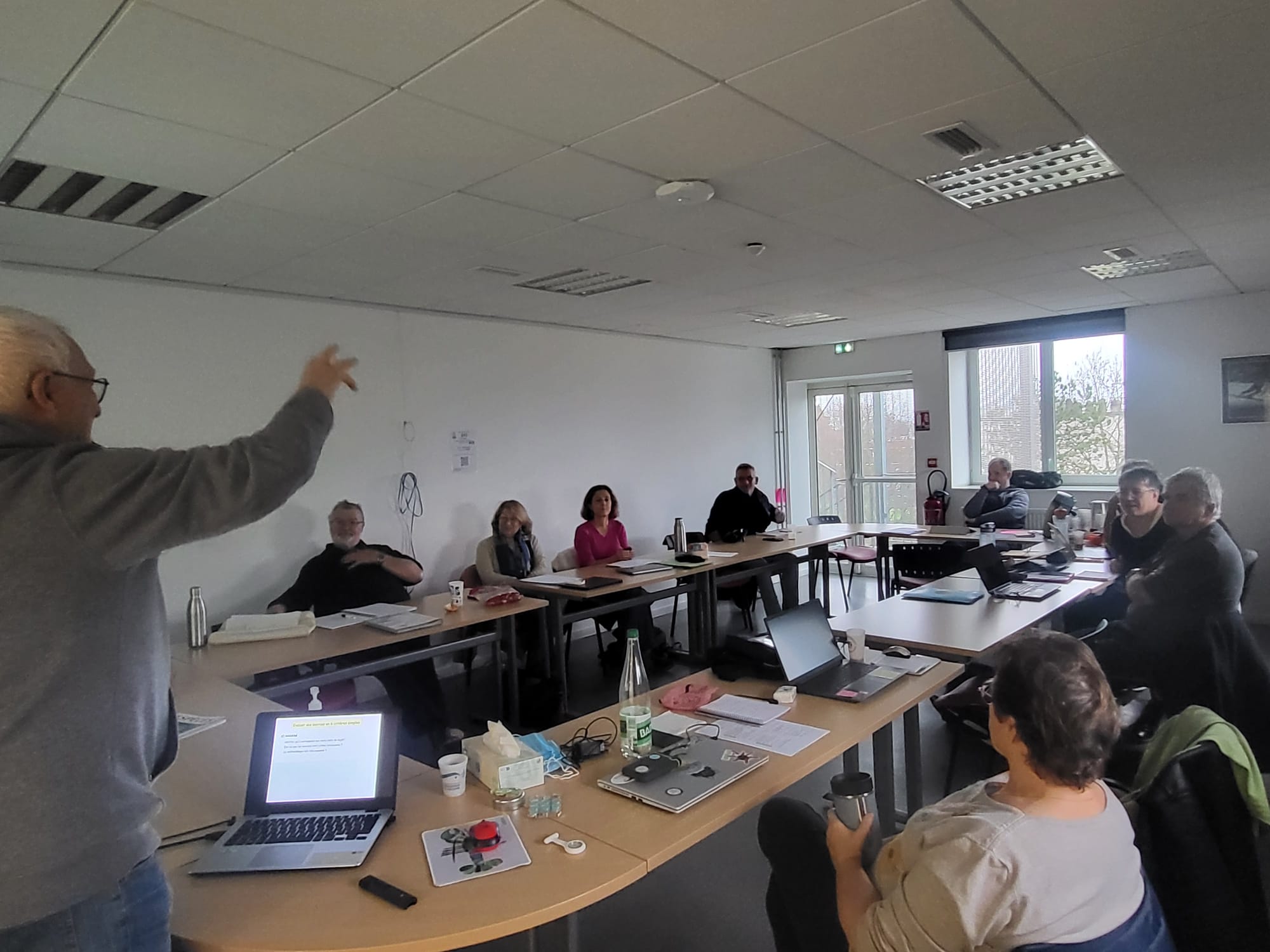 Au terme du week-end, les futurs MF1 se sont vu attribuer un tuteur (Alain, Hélène ou Cécile) et sont prêts à mener leur progression : il leur a été demandé de mettre en place une formation PB1 ou PB2 ; ils seront accompagnés par leurs tuteurs le temps nécessaire : chaque tuteur s’adapte aux besoins pédagogiques et organisationnels des stagiaires qu’il suit.